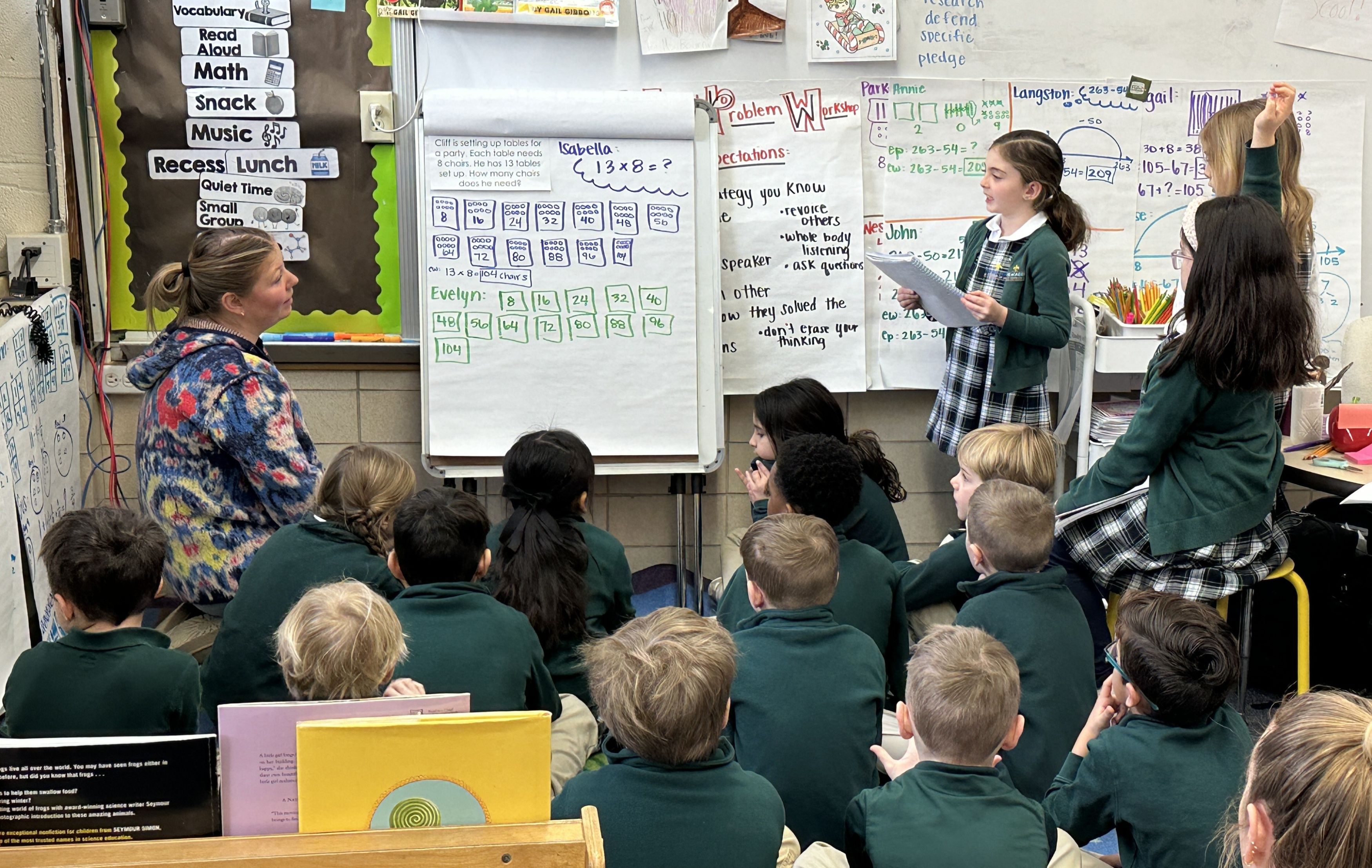 Elementary classrooms are designed to help students think deeply, ask questions, and explain their reasoning. Lessons move beyond memorization, encouraging students to make connections, solve problems, and engage actively in their learning. This approach helps students develop strong academic habits and a genuine love of learning.