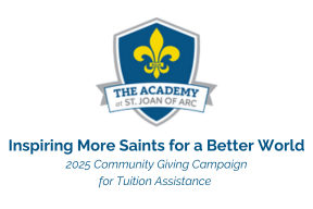 The Academy at St. Joan of Arc is challenging minds, engaging hearts, and igniting lives of purpose. When you give to The Academy's Annual Community Giving Campaign for Tuition Assistance, you are educating the hearts and minds of the next generation of Saints that will lead our world.